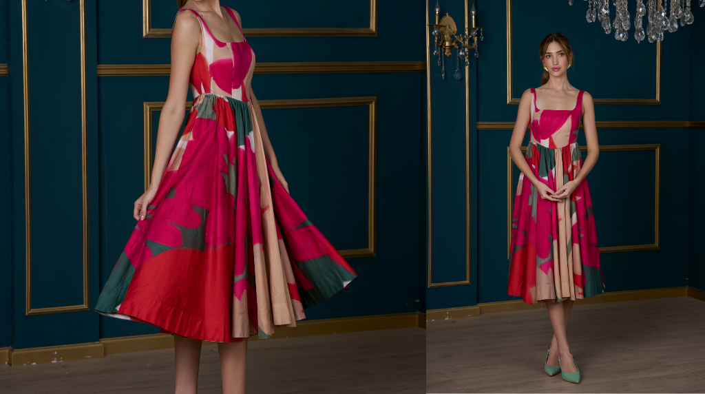 Inspired by the vibrant beauty of spring, Whispers of Spring is a celebration of renewal and elegance. Each piece is meticulously crafted with luxurious silks and breathable linens, featuring enchanting floral prints and unique patterns that evoke the season’s essence. From flowing dresses to tailored separates, this collection offers a harmonious blend of sophistication and freshness, perfect for the modern woman who values timeless style.