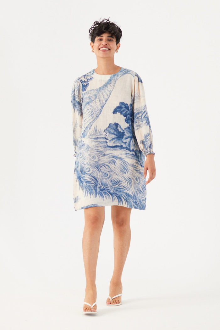 Then there’s the Peacock Short Dress—a short dress for women that carries regal sumptuousness. Crafted from high-quality, breathable 100% linen, it is adorned with the Peacock print in a Toile de Jouy-inspired print. The Peacock Short Dress walks the line between playful mini and artful statement.